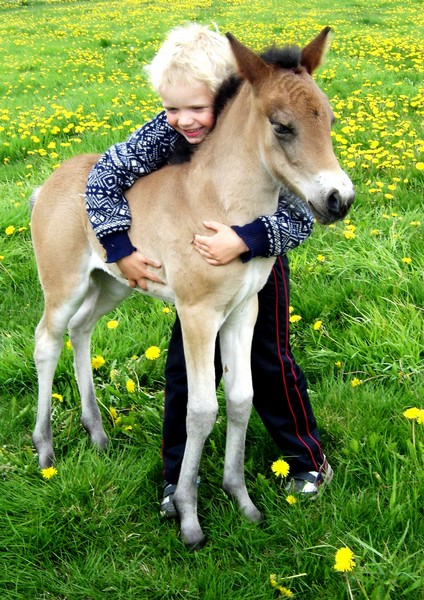 Sindri Snær knúsar kátur gæfu hryssuna :) - Í Árgerði eru x hryssur kastaðar þær eru